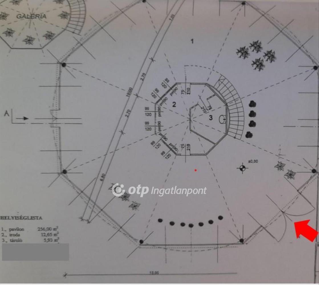 A telken 3 felépítmény található: pavilon, üvegház és lakóház, összesen kb 3300 nm-en. a pavilon szabályos nyolcszög alakú, egyterű bemutatóterem és üzlethelyiség, amely acélszerkezetű, körben üvegezett kialakítású. Fűtéssel rendelkezik. Az üvegház a (virág) növények termesztésére kialakított épületrész, amelyet speciális szerkezettel és hőszigetelt üvegezéssel építettek meg. Típusa: venlo. Az üvegház gördülő termesztő asztalokkal, magasnyomású párásítóval, speciális hűtőházzal, energiaernyővel, energiatakarékos világítással felszerelt. Az üvegházhoz közvetlenül kapcsolódik a szabályos nyolcszög alakú, egyterű bemutatóterem és üzlethelyiség. a pavilon közepén galéria található, amely az iroda funkciót látta el.