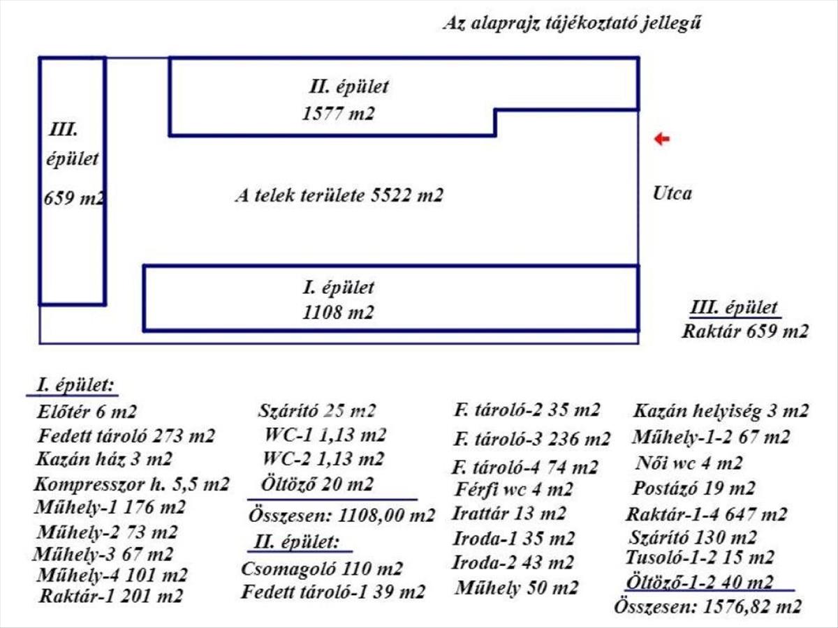 Békés vármegye, Mezőkovácsházán az Alkotmány utcában, összesen 3343 m2 beépített alapterületű ipari telephely ingatlan eladó. a telek területe 7167 m2. Az ingatlan elektromos áram (380 V is), vezetékes víz, vezetékes gáz közművekkel rendelkezik. a telephely elektromos áram igénye, napelem rendszeren keresztül biztosított. a telken 3 épület található. Épület1: 1108 m2 alapterületű több helyiségből álló épület, mely tégla falazatú alu tarpézlemezes tetőborítású. a helyiségek aljzata betonozott. a fűtése gázkonvektor, illetve mennyezeti elektromos fűtés. Épület2: hagyományos építési móddal készült, összesen 1577 m2 alapterületű, iroda és szociális funkcióval rendelkező épület: az irodák, női-férfi wc, előtér kerámia lap, a tusolók, öltözők mettlachi lap, a raktárak, tárolók, betonozott aljzatúak. Fűtése: gáz-cirkó rendszerű, radiátoros hő leadással. Épület3: 659 m2 alapterületű, acél tartóoszlop szerkezetű, szendvicspanel burkolattal, betonozott aljzattal. a telephely udvara aszfaltozott. Az ingatlan együttes, üzemnek, telephelynek, raktárnak, logisztikai központnak egyaránt tökéletes választás. a létesítmény jelenleg is működő cég tulajdonában van, opcionálisan a céggel együtt is megvásárolható. a feltüntetett irányár az ÁFÁ-t nem tartalmazza. Amennyiben érdeklődését felkeltettem, az ingatlan előre egyeztetett időpontban megtekinthető! Az ingatlan megvásárlásához kedvező feltételű, akár fix kamatozású, hitel is igényelhető, melynek intézéséhez ingyenes segítség áll a leendő vásárlók rendelkezésére. Az OTP Ingatlanpont eladó és kiadó ingatlanokat keres, magyar és külföldi ügyfelei részére, teljes körű pénzügyi ügyintézéssel! Hitel.hu - Hasonlítsa össze a bankok lakáshitel ajánlatait