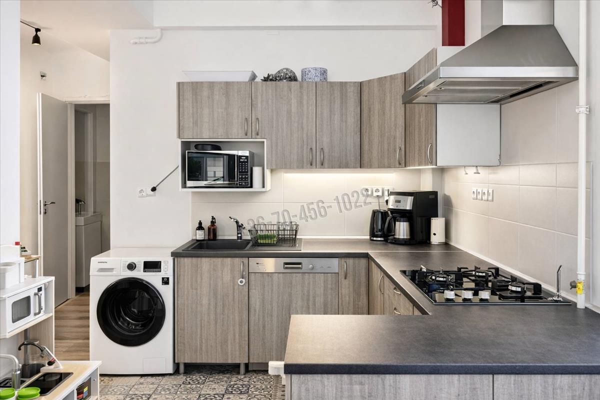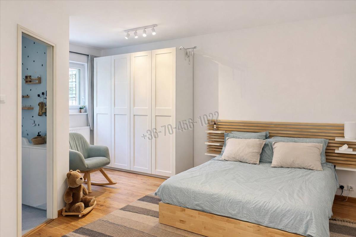 A földszinten található, belső kétszintes lakás alsó szintje 127 nm, néhány lépcsőn keresztül közelíthető meg. a 26, 5 nm-es, tágas terasz tökéletes helyszíne lehet reggeli kávéknak vagy esti kikapcsolódásnak. a lakás központi tere a nagyméretű nappali, amely harmonikusan kapcsolódik a felújított, beépített és gépesített konyhához. Két hálószoba és egy elegáns fürdőszoba (épített szaunával) szolgálja a kényelmet, a körbejárható szobák pedig különleges, klasszikus polgári hangulatot kölcsönöznek az otthonnak.