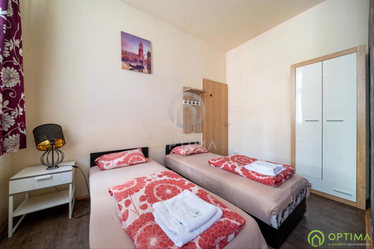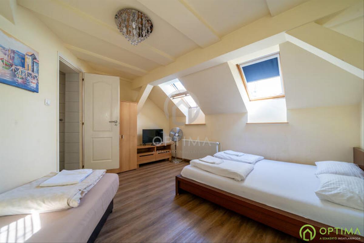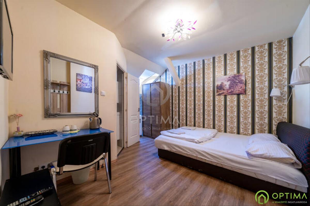 District viii, Koszorú Street | gross 236 m² | 300 m² plot | 2 separate buildings | 10 units plus reception, dining area, kitchen and laundry | convertible attic 30 m² | capacity 22 guests