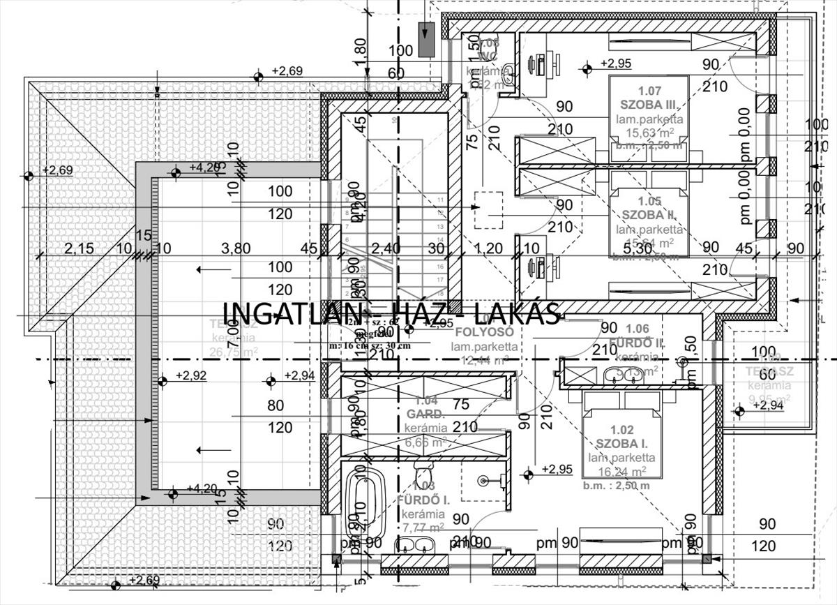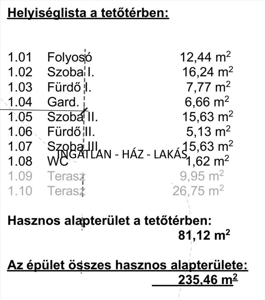 oEmelet: 82 m² teljes értékű belmagasságú lakótér (nem csapott tetőterek)