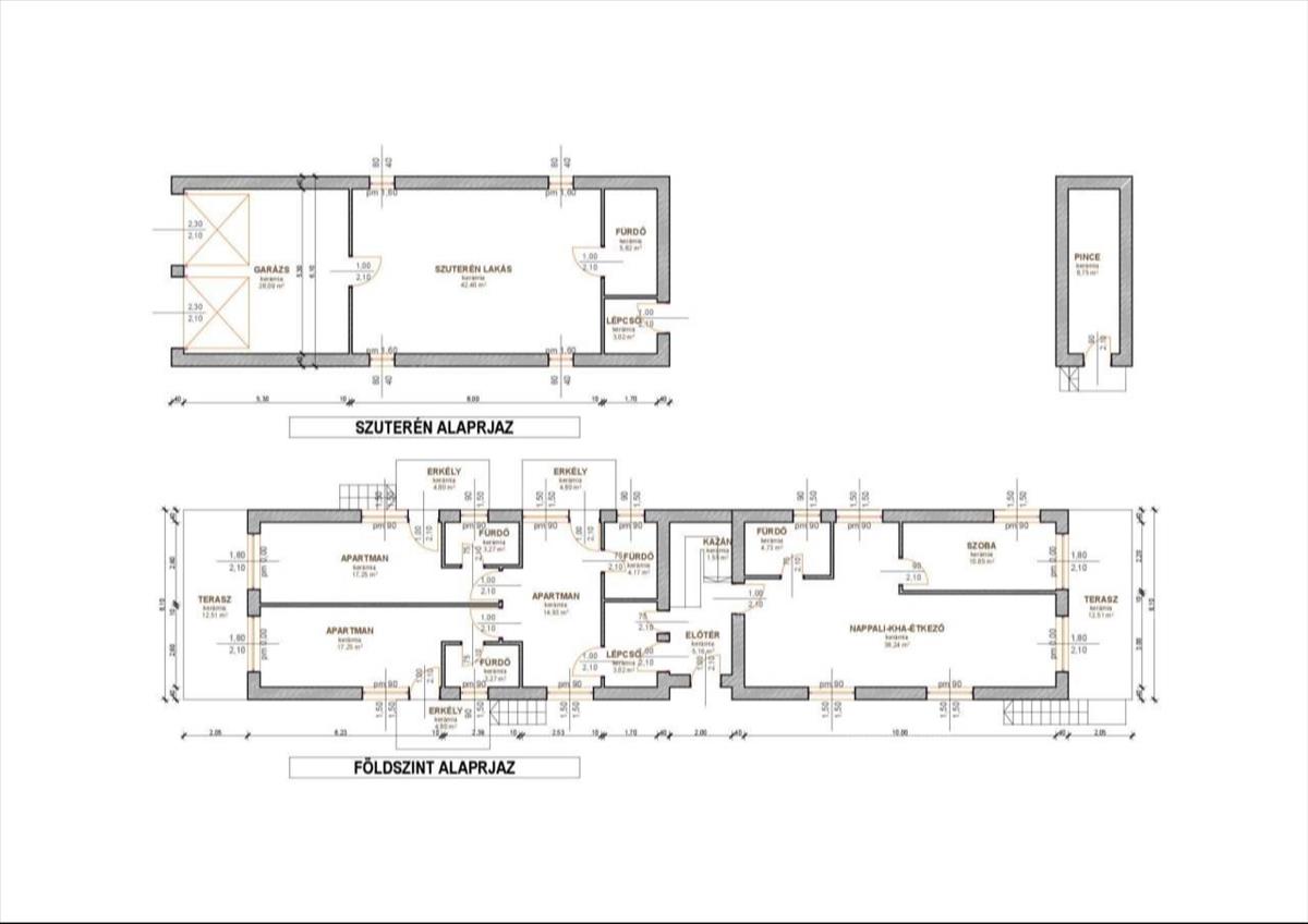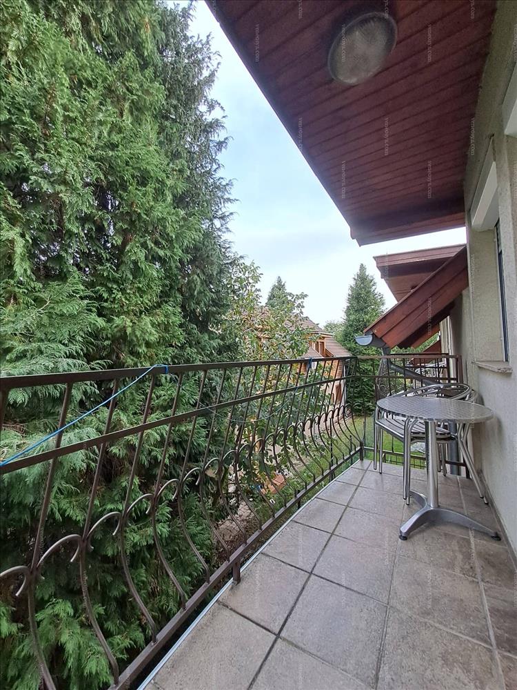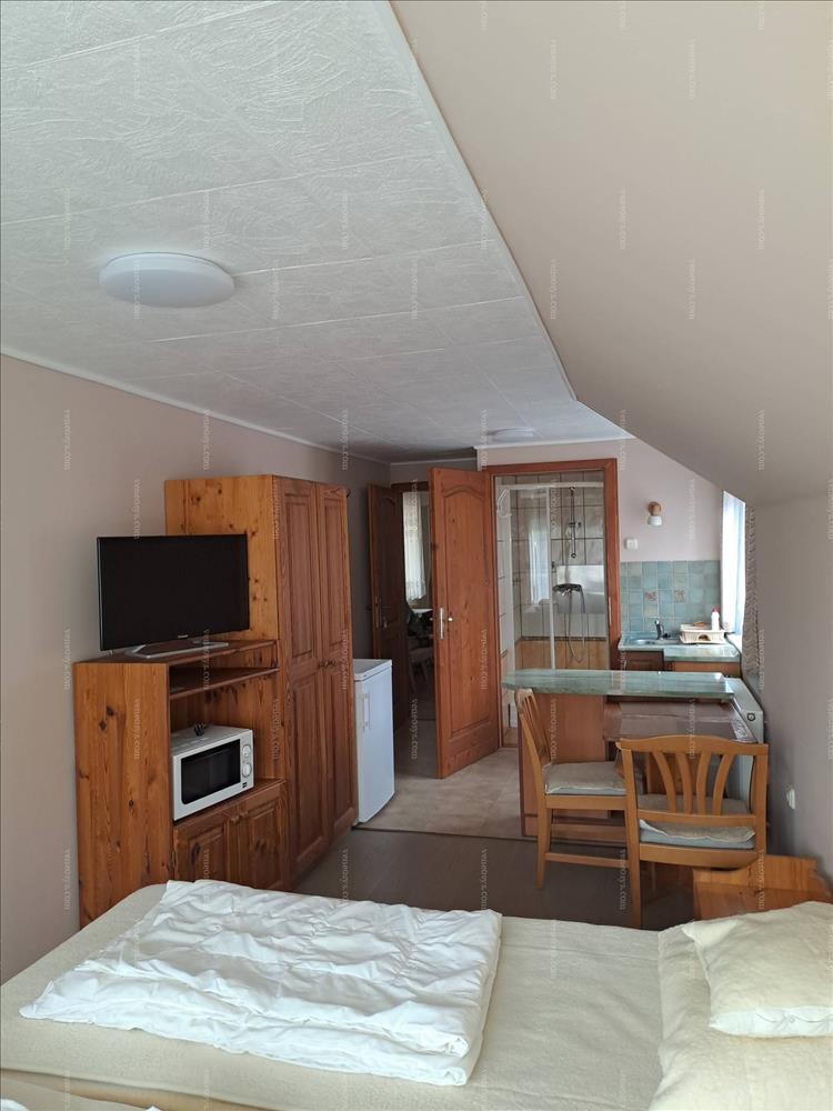 Az ingatlan 2001-ben épült, egy 590 m2-es saroktelken, ami három utcára néző, két oldalról nyílik bejárata, két oldalról pedig élősövénnyel látták el, ami dekoratív és funkcionális szerepet is betölt. Az épület tégla falazatú, mind két oldalán erkélyek és teraszok kaptak helyet, amit kovácsoltvas korlát díszít. a telek rendezett, egyik oldalról térkővel fedett (parkolásra alkalmas kb. 6-8 Vendég részére), a másik oldalon füvesített, parkosított. a ház 10 cm-es hőszigeteléssel ellátott, bruttó 440 m2 területű. Az emeleten 4 apartman, a földszinten 3 apartman és egy önálló lakrész található (szoba, nappali, konyha, fürdő). a földszinti előtérből, az emeletre fa lépcsőn keresztül tudunk feljutni. a szuterénen egy lakrész fürdővel, konyhával lett kialakítva, mellette egy dupla garázs, pince rész, műhely és mosókonyha. a lakrészekben beépített konyhabútorok és funkcionális berendezések lettek elhelyezve. a ház fűtéséről gázkazán gondoskodik. Műanyag nyílászárói, redőnnyel és rovarhálóval felszereltek. Minden lakrészhez erkély vagy terasz tartozik.