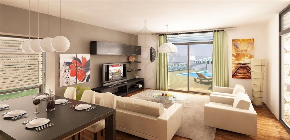 4+1 Szobás, hatalmas 210 nm villa, csodálatos kilátással, 30 nm erkéllyel, további 40 nm terasszal és saját 48 nm medencével a most épülő projektben csupán pár percre a mediterrán tengertől!