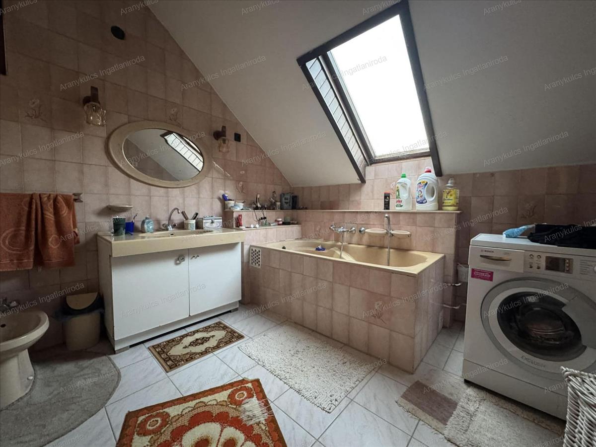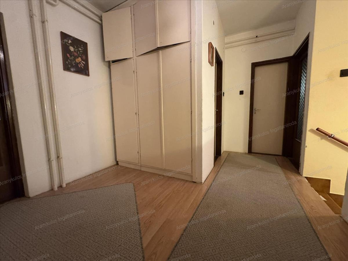 A földszinten a bejáratot követően egy közlekedő fogad, innen nyílik két szoba, a konyha étkezővel, valamint egy fürdőszoba és külön wc. Az emeletre lépcső vezet, ahol további négy szoba, egy közlekedő, valamint egy fürdőszoba és külön wc került kialakításra, így akár nagycsaládosok, akár több generáció számára is ideális lehet az elosztás. a házhoz tartozik egy 11, 4 m²-es terasz, amely kellemes helyszíne lehet a reggeli kávéknak vagy a nyári esti beszélgetéseknek, továbbá egy 19, 5 m²-es garázs és tároló is, amely praktikus megoldást nyújt parkolásra és tárolásra egyaránt.