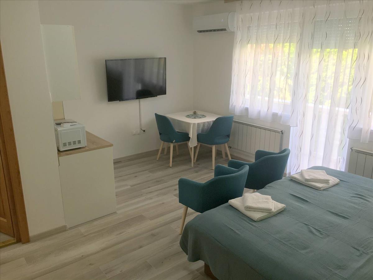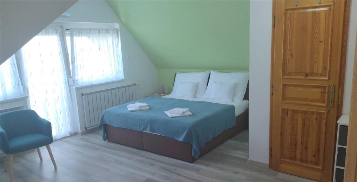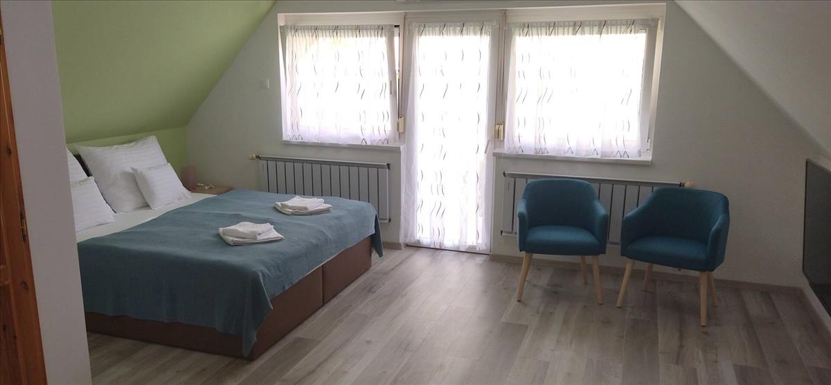 A háromszintes, 562 nm -es épület mindegyik szintjén 4 db franciaágyas szoba, teakonyha, valamint saját tusoló és wc áll rendelkezésre, így ideális választás lehet családok vagy baráti társaságok számára.