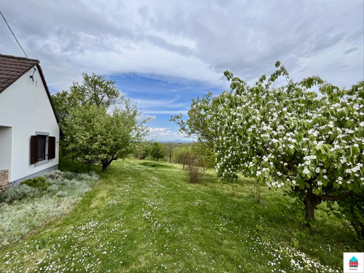 Die Aussicht und das Panorama sind fabelhaft: Man hat einen uneingeschränkten Blick auf den Plattensee, sein gesamtes westliches Becken und die Wasseroberfläche! Bei gutem Wetter beträgt die Sichtweite 40–45 km. Plattensee ist nur 9 km Luftlinie entfernt! Das Grundstück liegt auf einem imposanten Hügel und grenzt beidseitig an ein steil abfallendes Waldgebiet mit kleinen Bergpfaden und einheimischen Bäumen. Sehr privat und abgeschieden gelegen, aber die Stadt ist nur 5 Minuten entfernt! Auf dem Grundstück wachsen Weinreben und zahlreiche Obstbäume (Apfel, Pfirsich, Sauerkirche, Kirsche, Birne, Mispel usw. ).