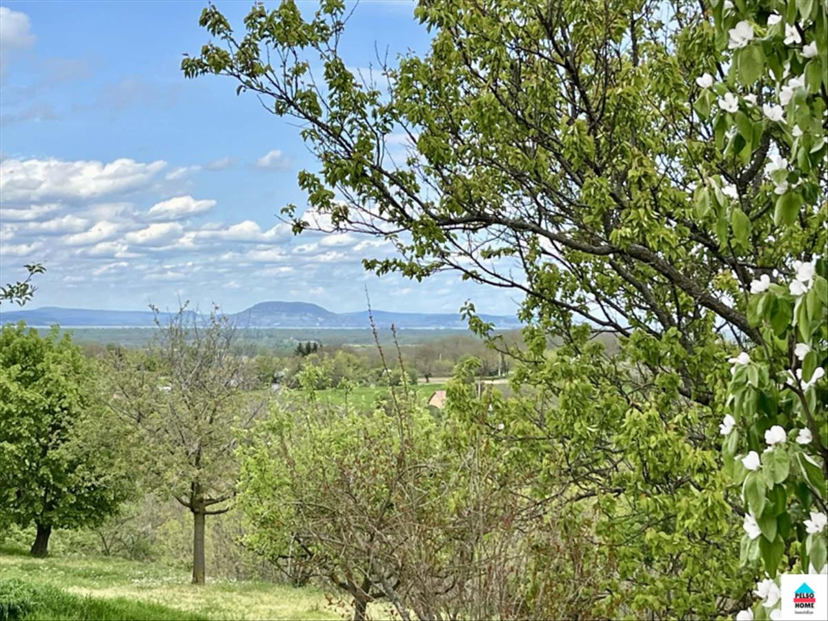 A kilátás és a panoráma mesés. . . Teljes rálátás nyílik a Balatonra a Badacsony, Csobánc, Keszthelyi hegység, Fonyód valamint a teljes Nyugati medencéje és víztükör is jól látható! Szép időben a látótávolság 40-45km. a Balaton légvonalban csak 9km! a telek impozáns dombtetőn helyezkedik el és mindkét oldalt meredeken lejtő erdőrész határolja, kis hegyi ösvényekkel és őshonos fákkal. Nagyon privát és eldugott de a város is csak 5 perc! a területen szőlő, rengeteg gyümölcsfa (alma, barack, megy, cseresznye, körte, naspolya, stb).
