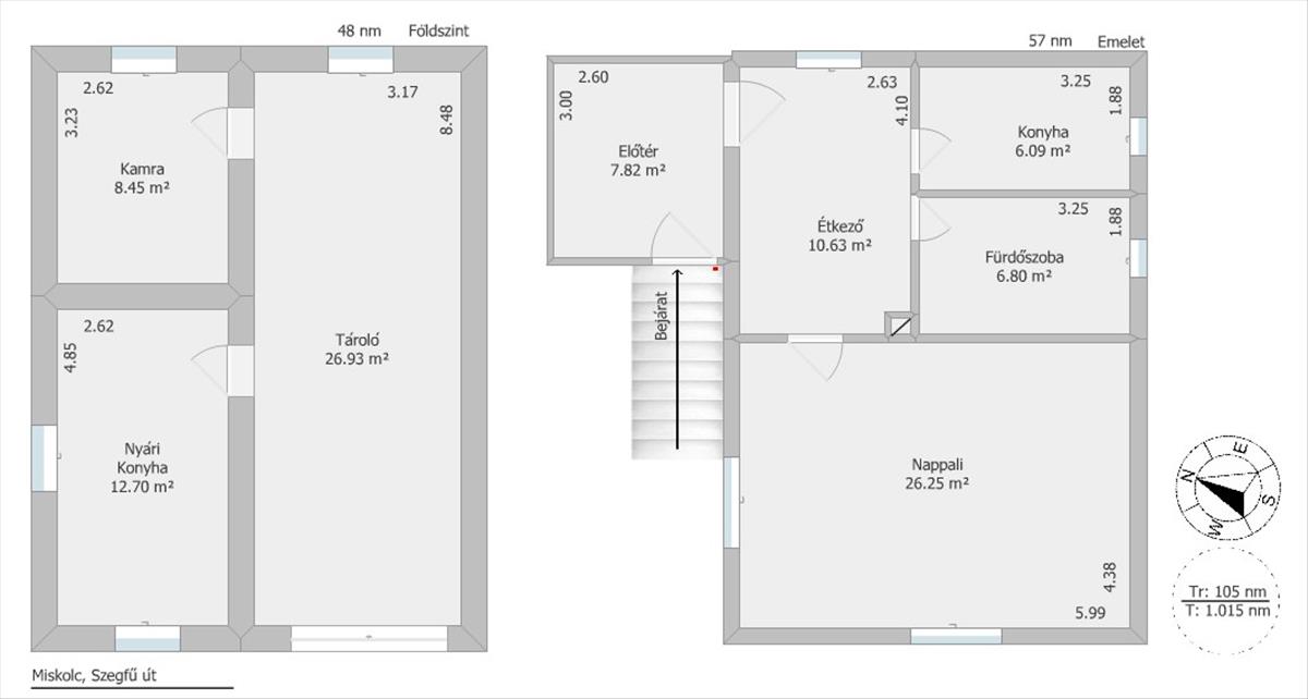 Eladó Miskolcon egy tégla építésű 2 szintes, 64 nm -es, 2 szobás jó állapotú családi ház a Szegfű Dűlő utcában. a tárgyi ingatlan faszerkezetű nyílászárókkal és redőnyökkel szerelt, fűtését radiátorok, kazán illetve hőszivattyú biztosítja. Az ingatlan 3 fázisú áramellátással és riasztóval felszerelt. a környék biztonságos, az utcát jó lakóközösség jellemzi.