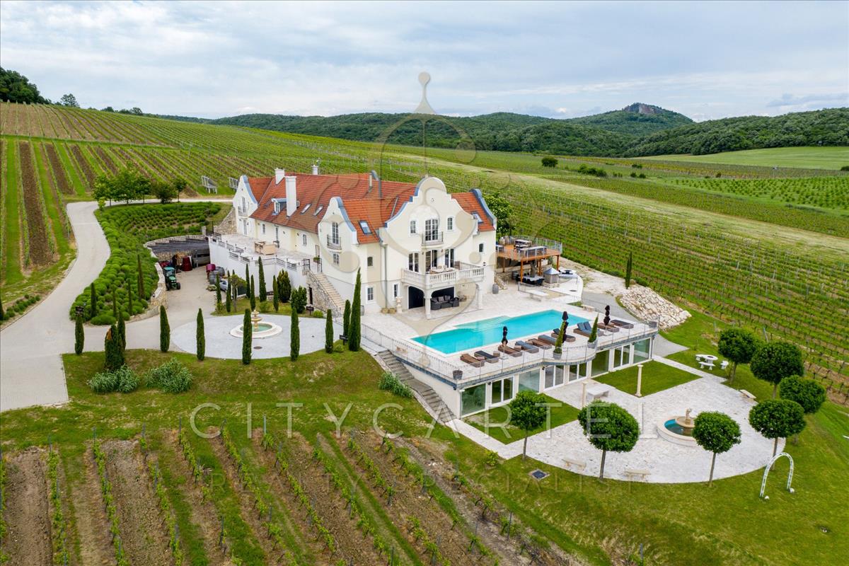 FESTŐI környezetben, a Balatonhoz közel kínálok eladásra egy francia Chateaux stílusban megépített, eklektikus, csodálatos panorámás, 2250 nm alapterületű, felújított, 3 szintes, 9 szobás borbirtokot a hozzá tartozó 10 hektárnyi szőlőtermő területtel!