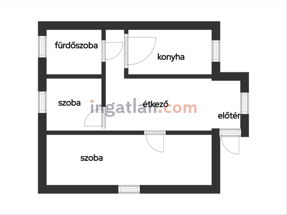 Az ingatlanban két szoba, egy fürdőszoba, konyha, étkező, valamint kamra található.