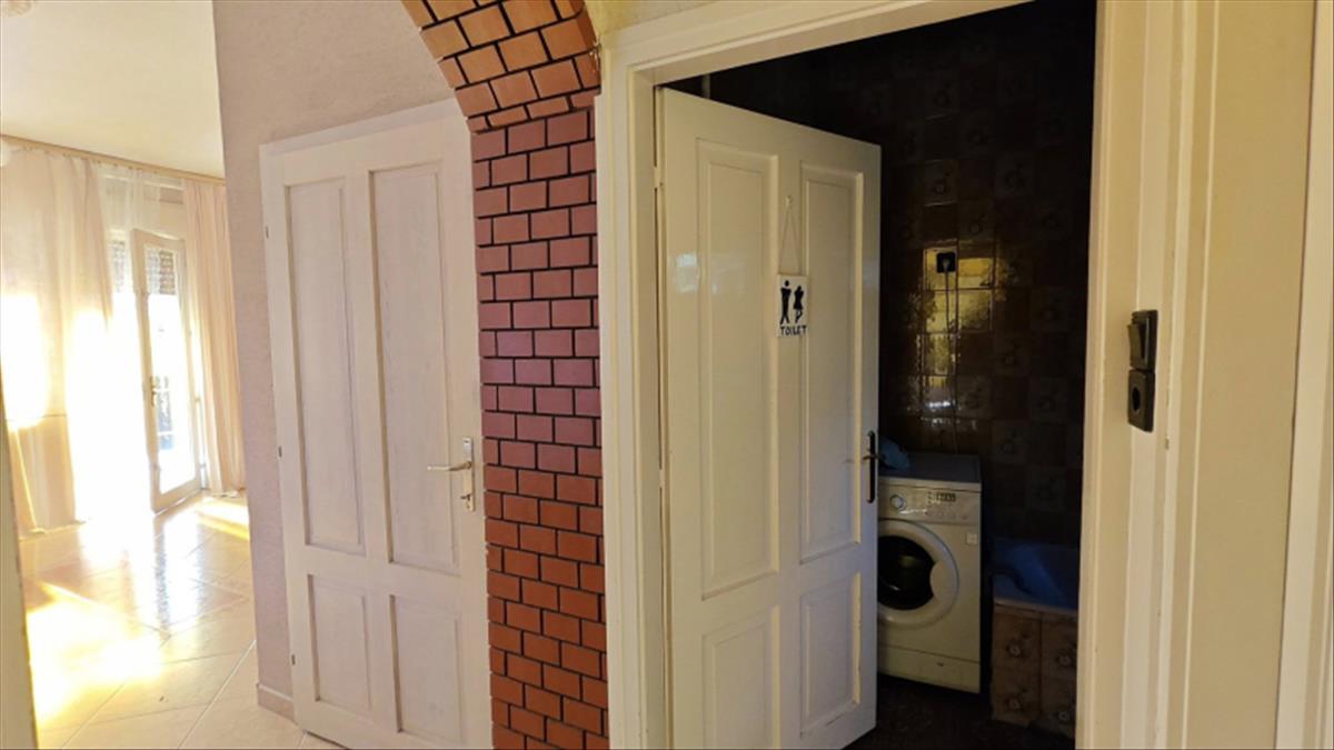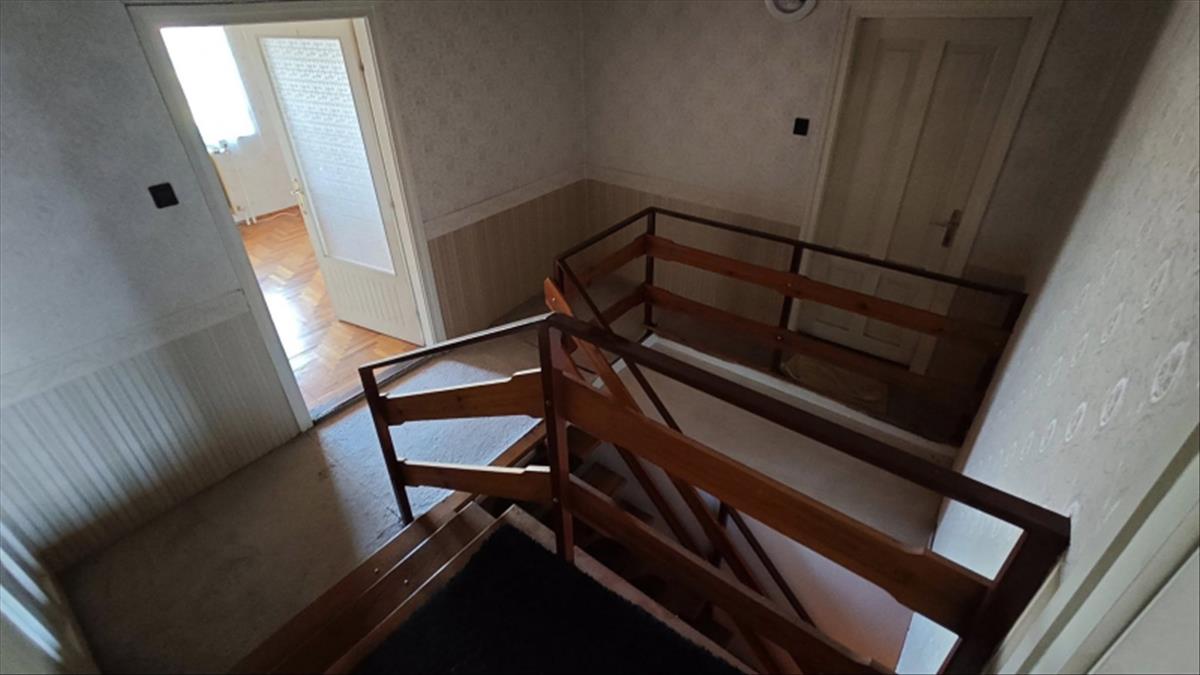 Ebédlő, konyha, kamra  fürdő wc-vel  kiosztással, illetve 3 háló az utca felőli oldalon, és a padlástérben 2 nagyobb méretű szoba adott.
