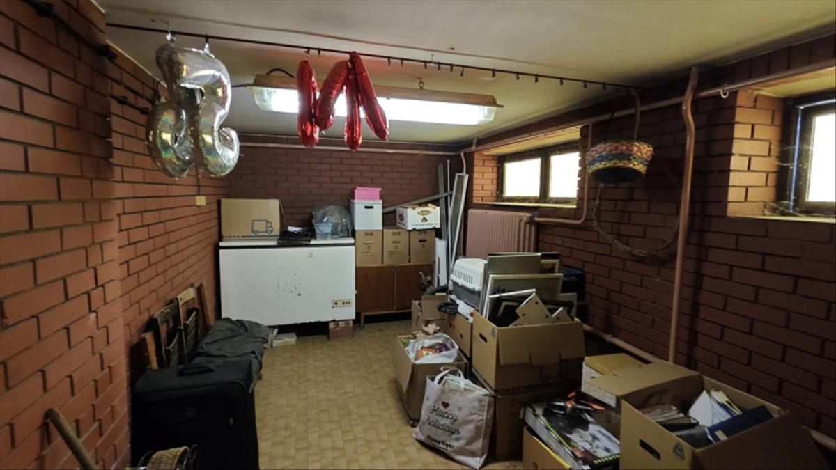 A pince szinten kazánnház, garázs, konyha közlekedő helységek lettek kialakítva klinker téglával a falon.