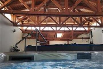 A fő épületet egy 30m2-es fedett folyosó köti össze egy másik épülettel (144m2), amiben található a wellness részleg és egy apartman.