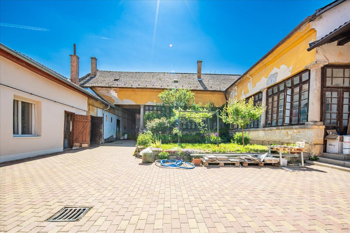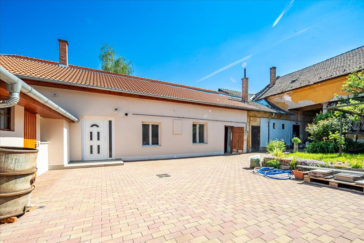 A házhoz tartozik egy 9 m² tároló és pincerész is, valamint egy kis udvar.