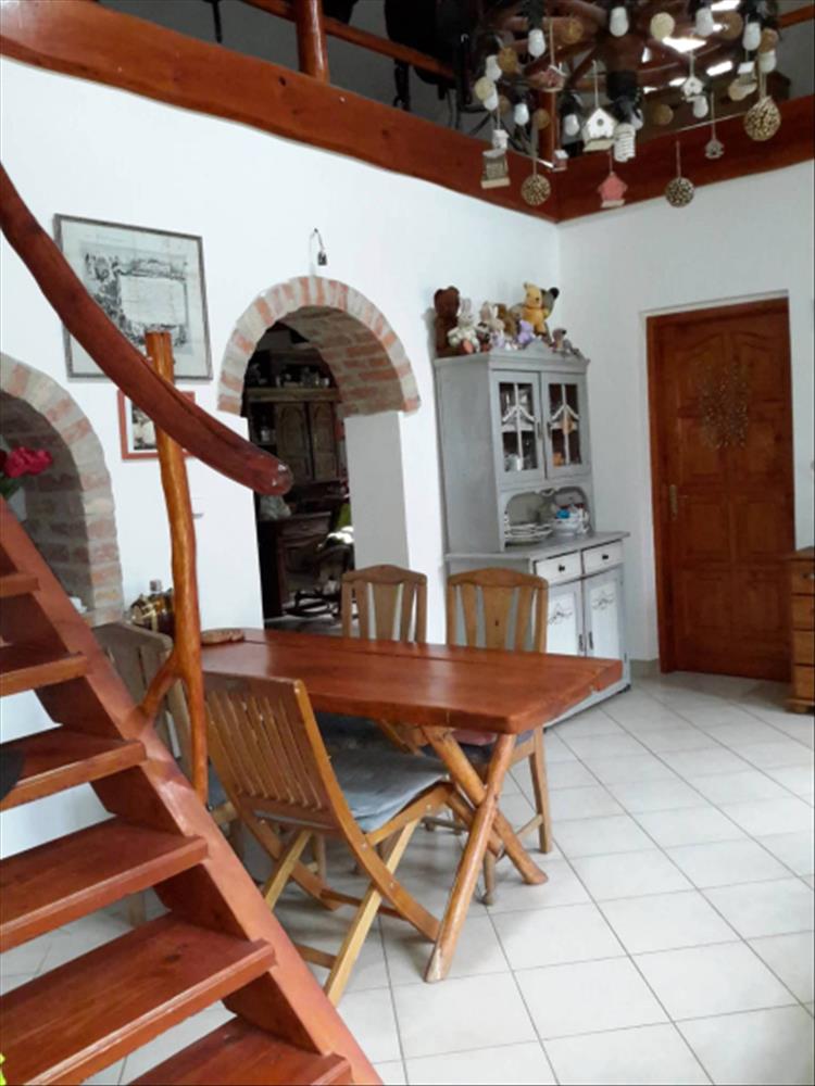 -Lakóház 107 nm-es galériázott. Alsó szinten kialakításra került egy étkező-konyha-nappali, egy hálószoba, kettő fürdőszoba, és egy kamra. a tetőteret (Galériát) egyedi kialakítású lépcsőn közelíthetjük meg. a felső szintre érve egy nagy nappali, egy fürdőszoba és egy gardrób szoba került beépítésre. (Igény szerint a nappaliból kialakítható még egy szoba). Az ingatlan fűtését egy vízteres kandalló biztosítja. Földszinten a járólappal burkolt helységekben padlófűtés, még a többi helység radiátoros fűtéssel lett ellátva.