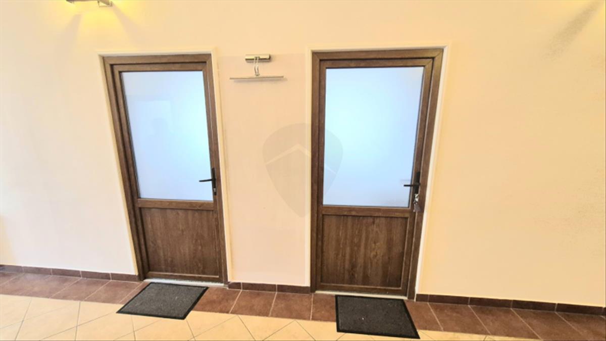 Az iroda egy közös folyosóról nyílik, ahol üzlethelyiségek és további irodák találhatók. a folyosón közös használatú wc és konyhasarok áll rendelkezésre.