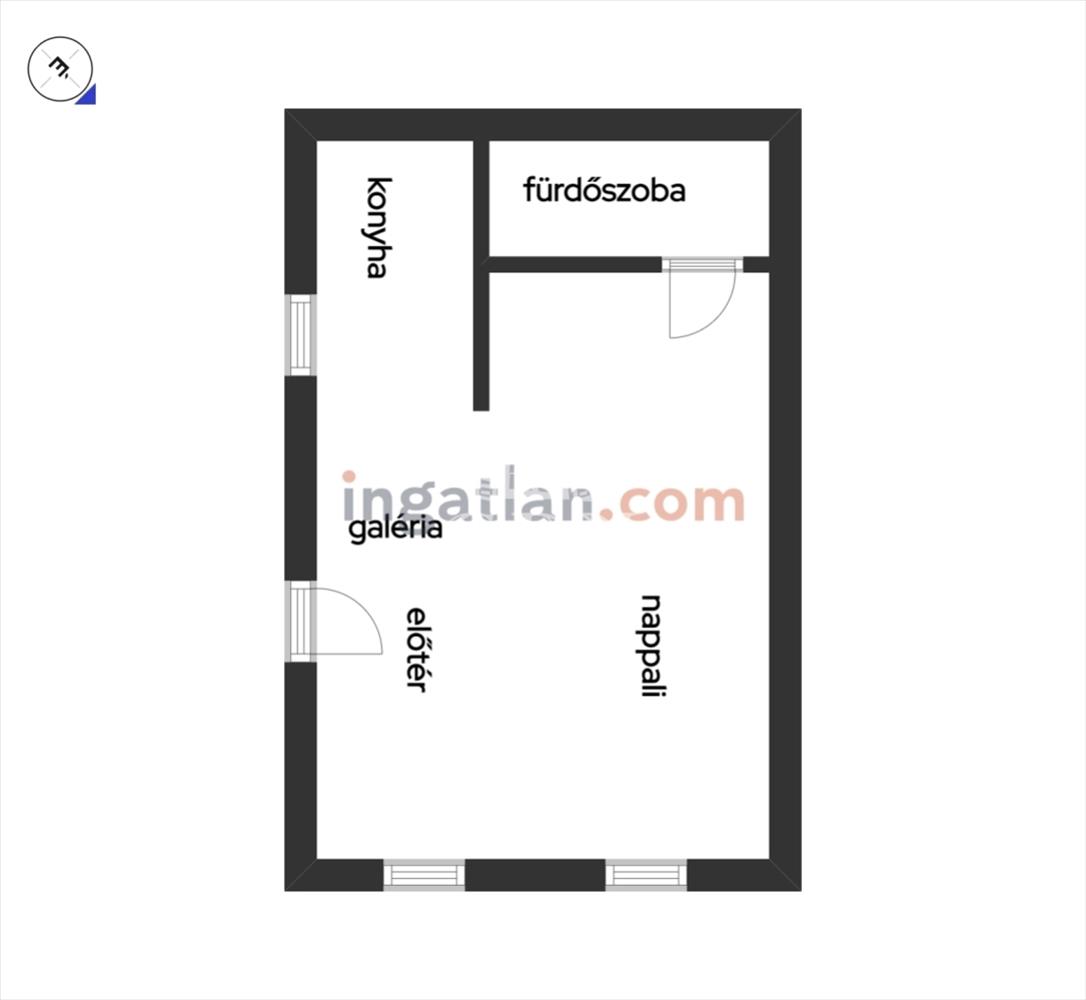 Az ingatlanban kialakításra került egy fürdőszoba wc-vel, nappali, konyha és egy galéria rész.