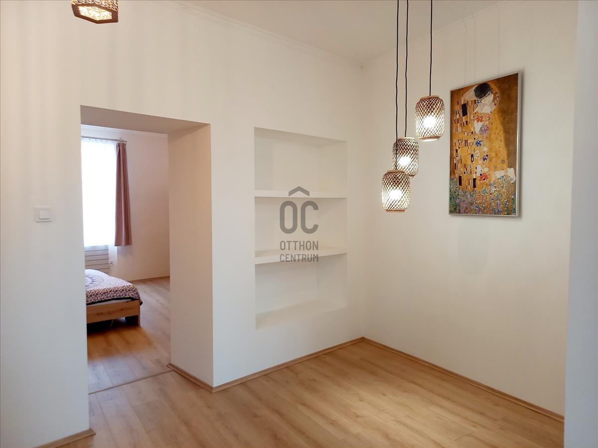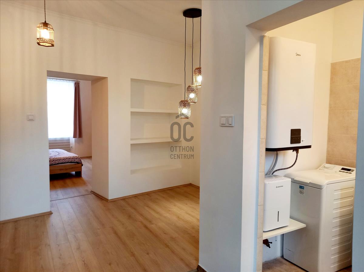 A lakás elosztása praktikus: előszoba–étkező, világos nappali–konyha, egy külön nyíló hálószoba, valamint zuhanyzós fürdőszoba WC-vel. Az otthonhoz egy saját, rendezett és parkosított privát udvar is tartozik, ahol terasz, főzőhely, árnyat adó lombos fák, kerti csap és egy 6 nm-es tároló is helyet kapott, így a belvárosi elhelyezkedés mellett is biztosított a nyugodt, kertkapcsolatos életérzés.
