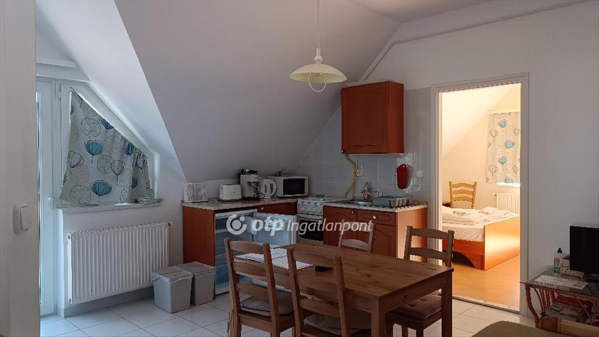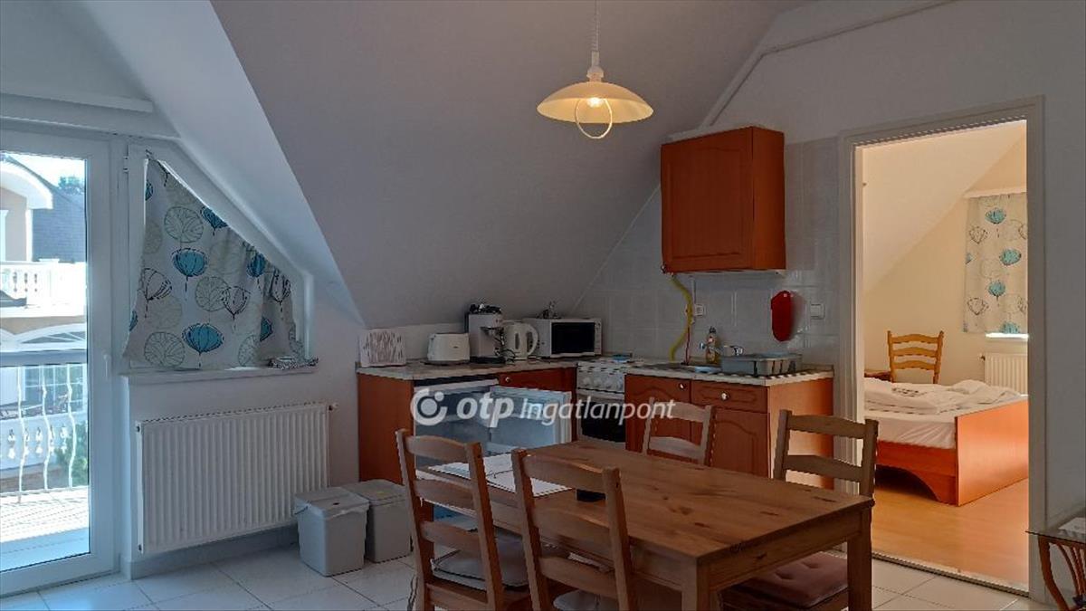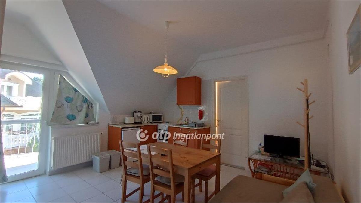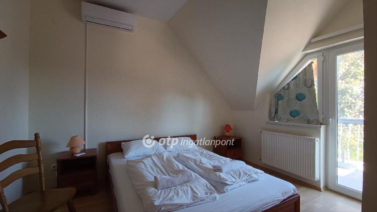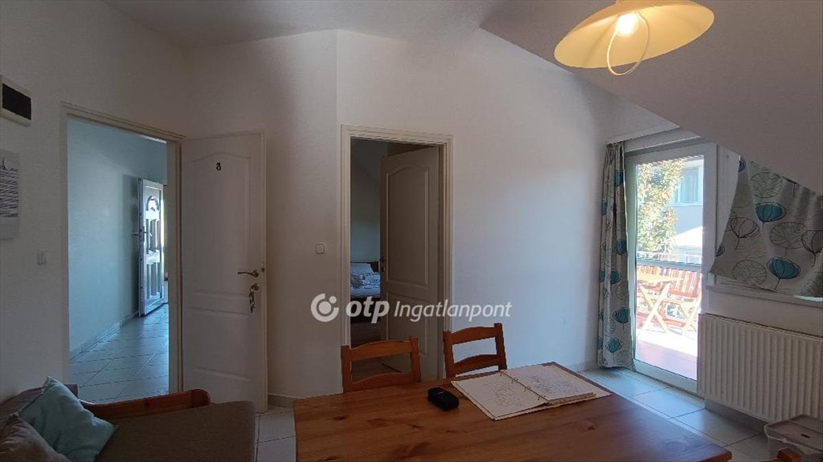 Eladó egy 4 apartmanos apartmanház emeleti 57 m2-es lakása. Az apartmanház minden lakása kétszobás, szobánként klimatizált. Az apartmanok világosak, napfényesek, de a nyári forróság ellen redőnyökkel szerelt. Fűtésük központi gázkazánnal történik. Mindegyik szobához tartozik egy zuhanyzós fürdőszoba és egy erkély. a lakóterek központi helyisége az amerikai konyhás nappali.Az ingatlan népszerűségét fémjelzi az évenkénti teltházas szezon. a közelben vendéglő, orvosi rendelő, gyógyszertár, bevásárlóközpont található, a Virág szabadstrand gyalog 1, 3km.