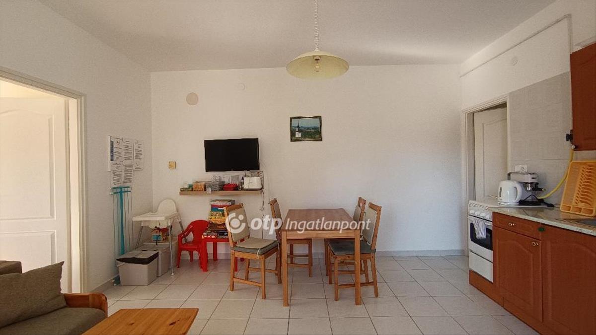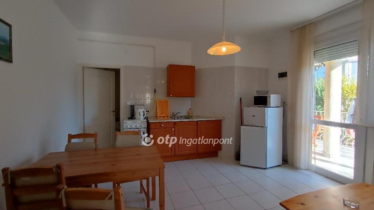 Eladó egy 4 apartmanos apartmanház földszinti 57 m2-es lakása. Az apartmanház minden lakása kétszobás, szobánként klimatizált. Az apartmanok világosak, napfényesek, de a nyári forróság ellen redőnyökkel szerelt. Fűtésük központi gázkazánnal történik. Mindegyik szobához tartozik egy zuhanyzós fürdőszoba és egy terasz. a lakóterek központi helyisége az amerikai konyhás nappali.