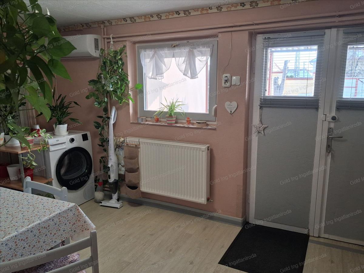 Békéscsabán a jaminai városrészen, autóval és tömegközlekedéssel is jól megközelíthető helyen található a 4 lakrészből álló ingatlan, melyből eladóvá vált az egyik lakás. Osztatlan közös tulajdon, de használati megállapodásban fektették le, hogy melyik tulajdonos az egészből mit használ. a szóban forgó lakásnak az utcáról külön bejárata és saját udvara van, és egy 20 nm-es garázs is tartozik hozzá.