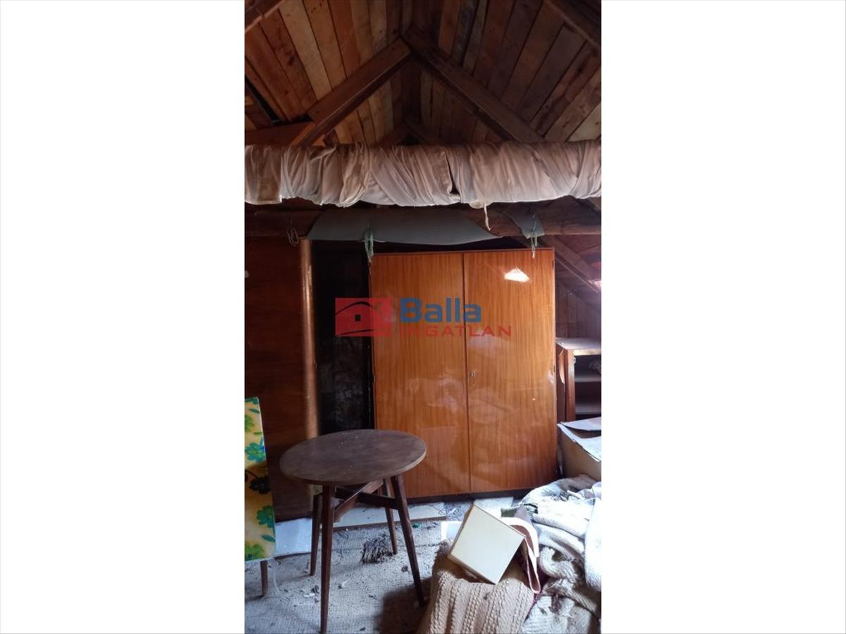 A házrész/lakás 'két helyiségből' és padlásból áll. a szoba terméskő és vályog építésű, vastag falakkal, ami jól szigetel - nyáron hűs, télen tartja a meleget. Az első helyiségben (beépített régi tornác) a konyhát és a Wc+tusoló helyét lehet kialakítani.