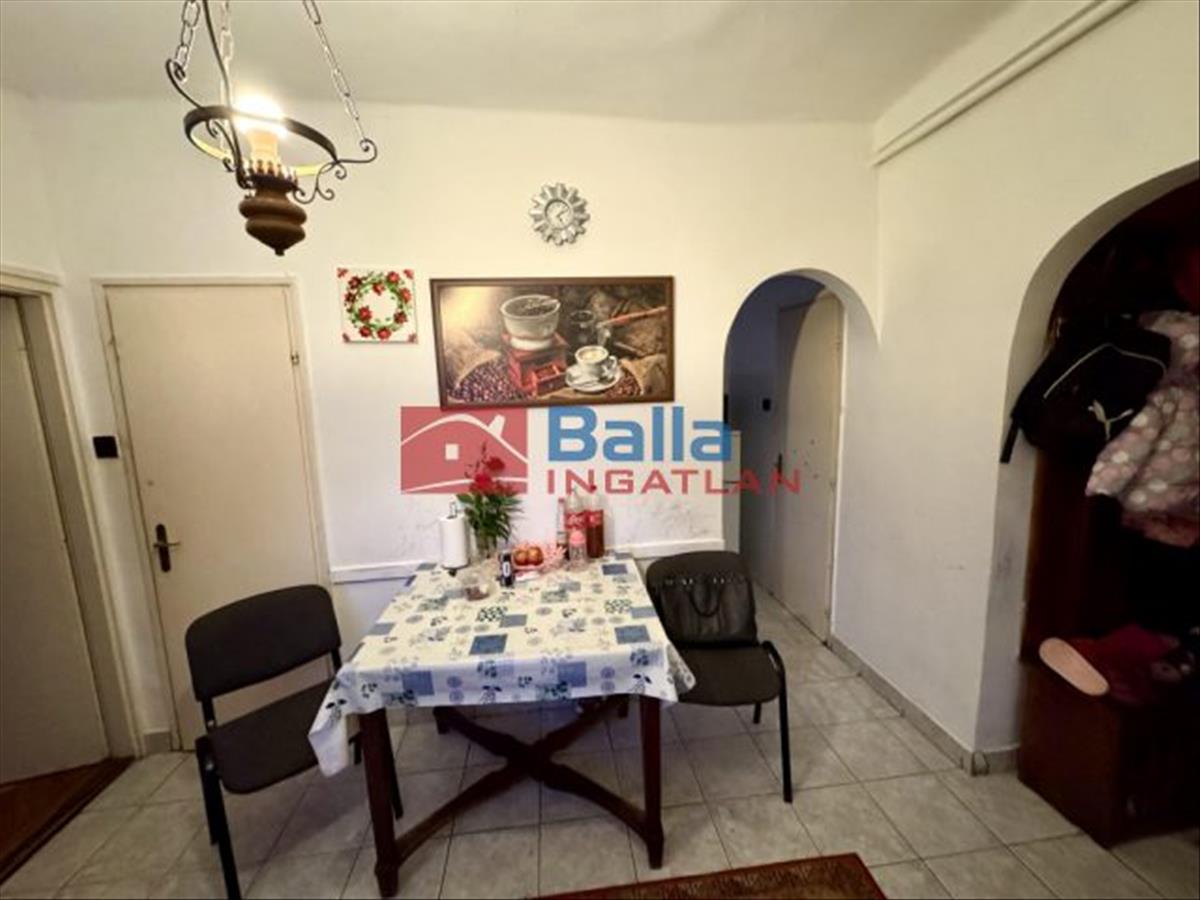 Az ingatlan alapvetően közepes állapotú, némi felújítást igényel. Két rendkívül tágas, jó méretű szobából áll, egy kisebb hálószobából, dupla fürdő, wc, konyha és egy tágas előtér, mely egyben étkező is. Elosztása kiváló, mivel minden szoba külön nyíló. Konyhája ablakos és kamrával ellátott. Fürdő egyben található a wc-vel, viszont van még egy fürdőszobája. Tágas terasza kb. 30 m2 az utca irányába néz. Kint található egy tároló helyiség is.
