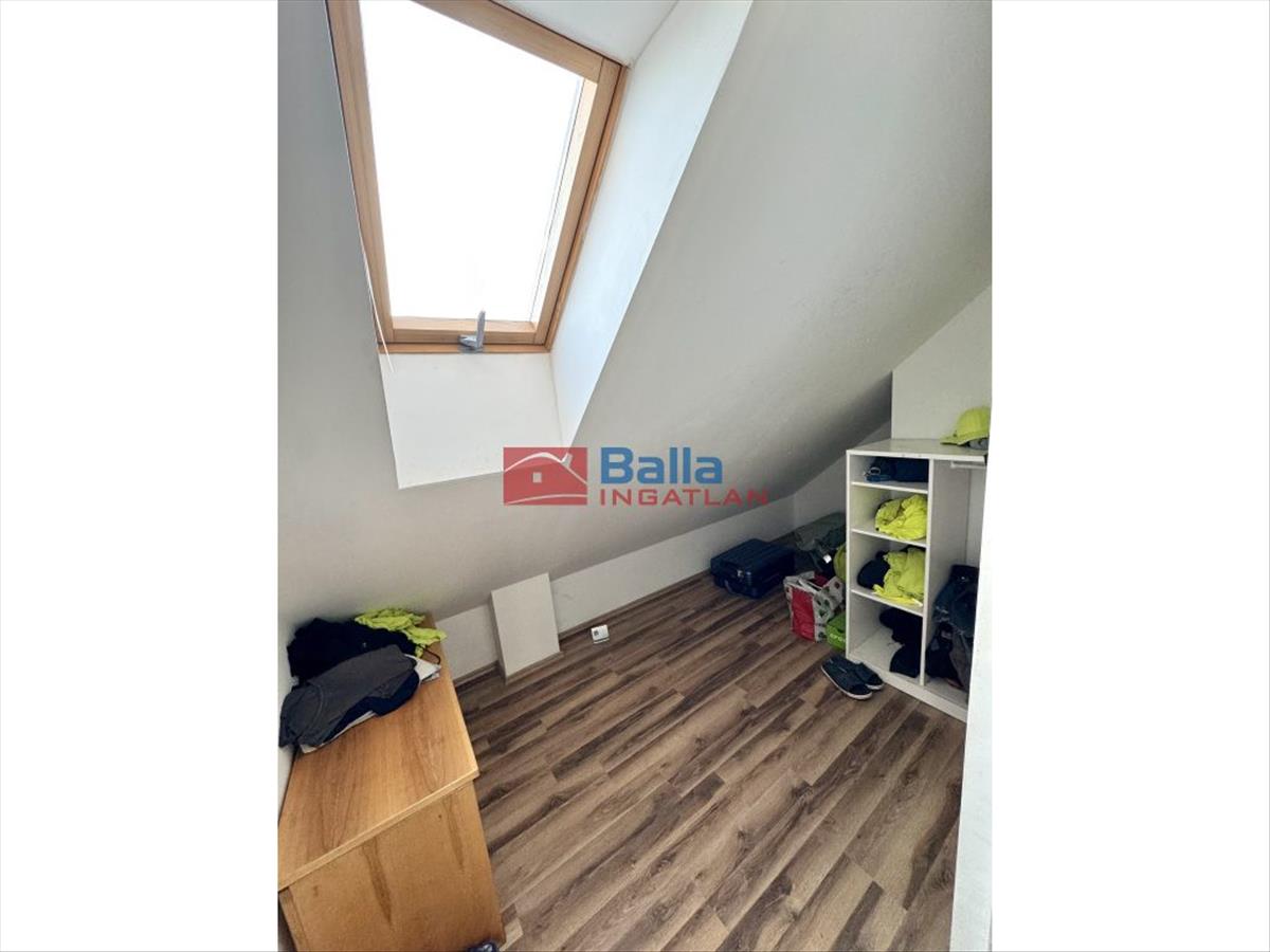 Az ingatlan mondhatni újszerű, megkímélt állapotú. Az alsó szinten található egy 30 m2-es amerikai konyhás nappali, egy 10 m2-es hálószoba és egy fürdő wc-vel (kádas), valamint egy 5, 4 m2-es erkély. a tetőtérben kapott helyet 2 db hálószoba, egyik 17 m2, a másik 16 m2, illetve még egy fürdő wc-vel. Az első szinten mindenhol járólappal burkoltak, itt végig padlófűtés lett kiépítve, a tetőtérben pedig radiátorok, ott a szobákat laminált padlóval. Klimatizált mind a két emelet.