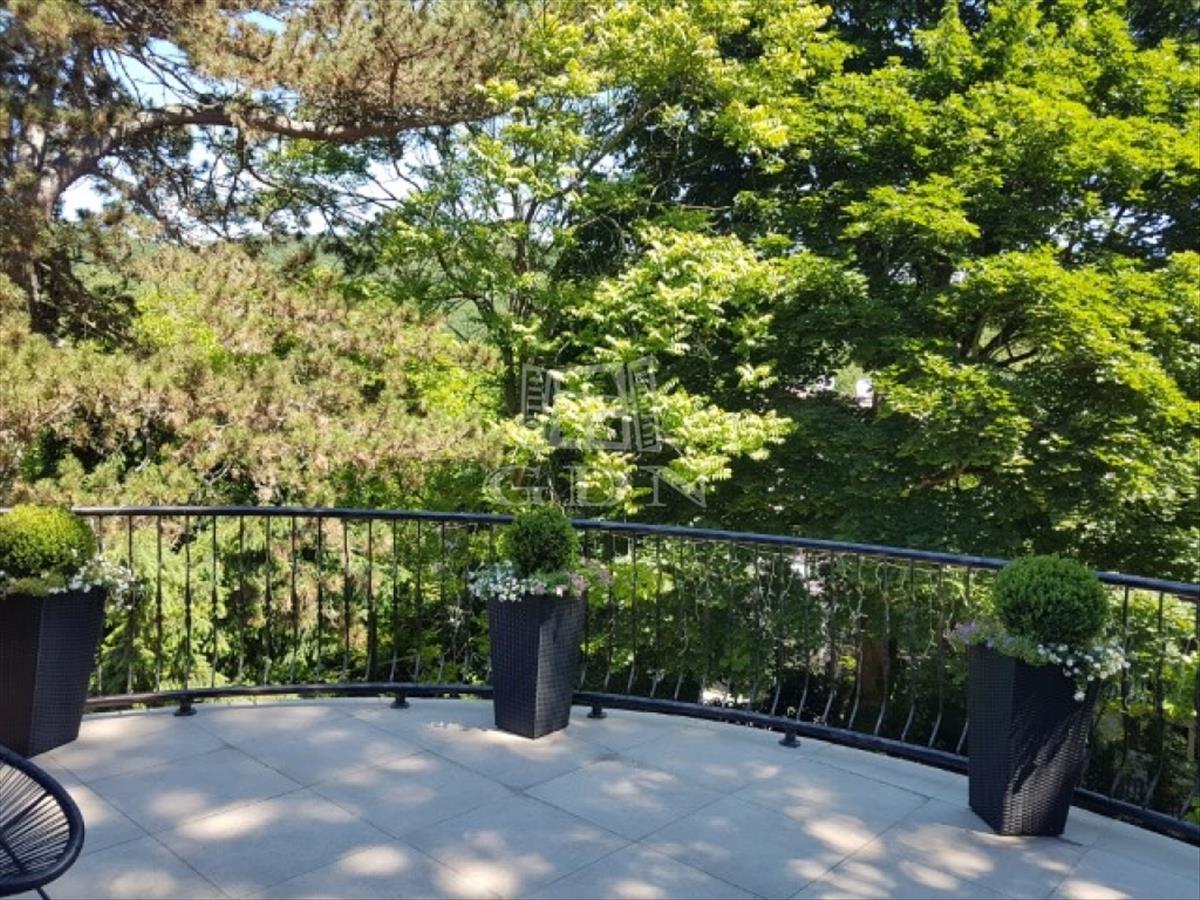 A legfelső szinten egy intim hálószoba, a hozzá tartozó exkluzív fürdőszoba, és a kizárólagos kijárású terasz helyezkedik el, ahonnan csodálatos panoráma tárul elénk a budai hegyekre.