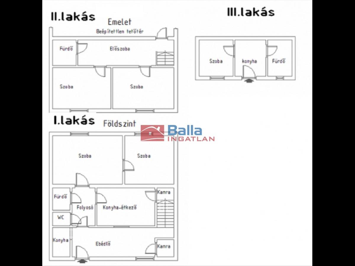 Csak a Balla Ingatlan Iroda kínálatában. Eladásra kínálok 3 lakást egy 303nm-es telekrésszel.1. Lakás :előszoba, fürdő, Wc külön, Konyha, kamra és 2 szoba.