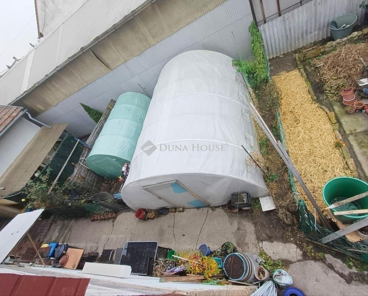 Az ingatlanhoz kb. 60m2 méretű, saját, leválasztott kertrész áll rendelkezésre, mely kiülésre, sütögetésre, veteményesnek is kiválóan alkalmas. Jelenlegi tulajdonosa növénytermesztésre hasznosítja, de a képeken látható fóliasátrak természetesen birtokbaadásig elbontásra kerülnek. Tartozik még a lakáshoz egy saját használatú, külön bejáratú, kb. 12m2-es tárolóépület is.