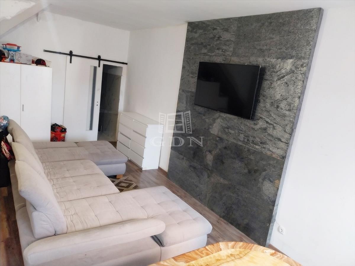 Alapterülete 44 nm, jelenleg 1 nagy szobás, amerikai konyhás elosztású, de könnyedén 1, 5-2 szobássá alakítható több féle alaprajzi lehetőséggel.