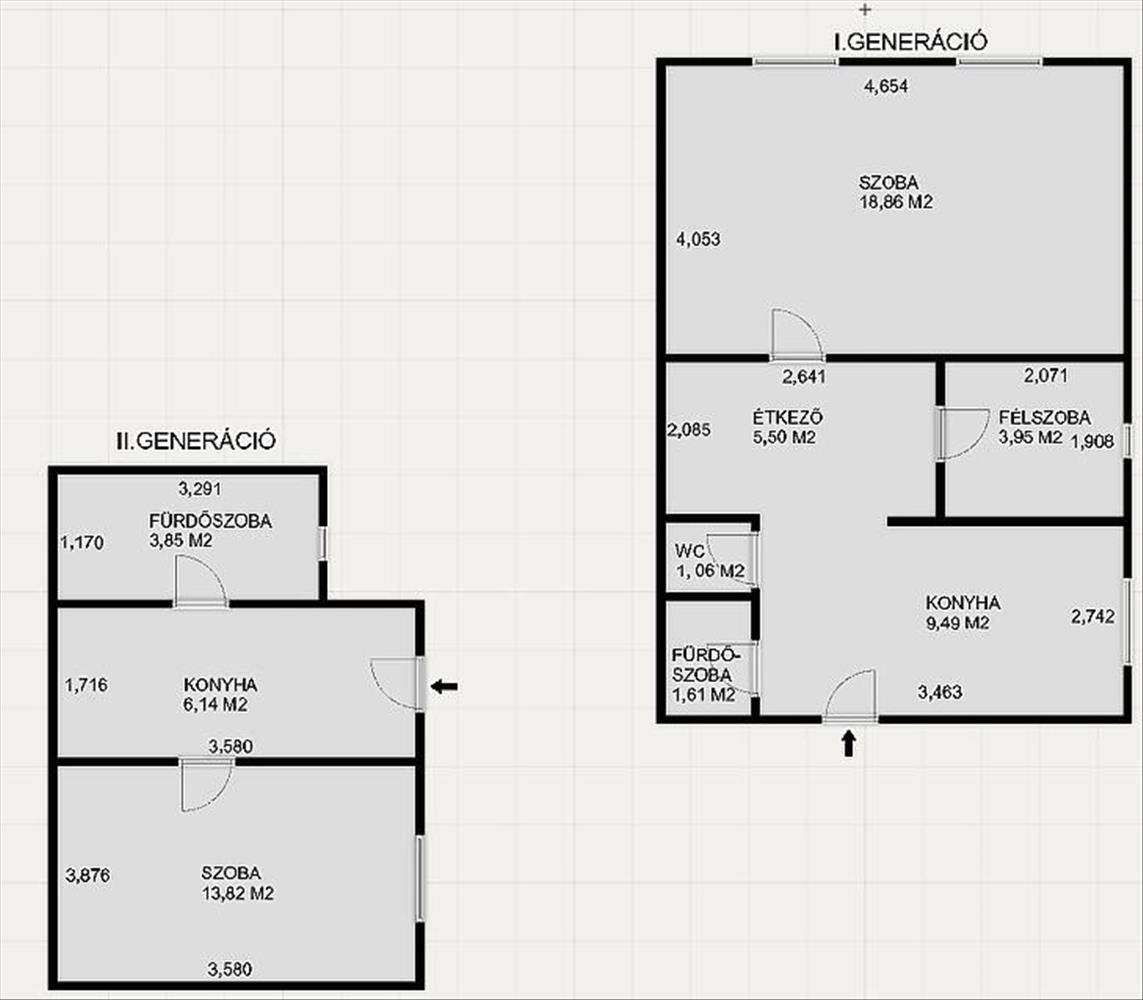 Az i. Generáció 41 m2-es, 1+1 félszobás, konyha, étkező és fürdőszoba található benne, a fűtést gázkonvektor és hűtő-fűtő klíma látja el. a villanyhálózat a 2000-es évek elején cserélve lett.