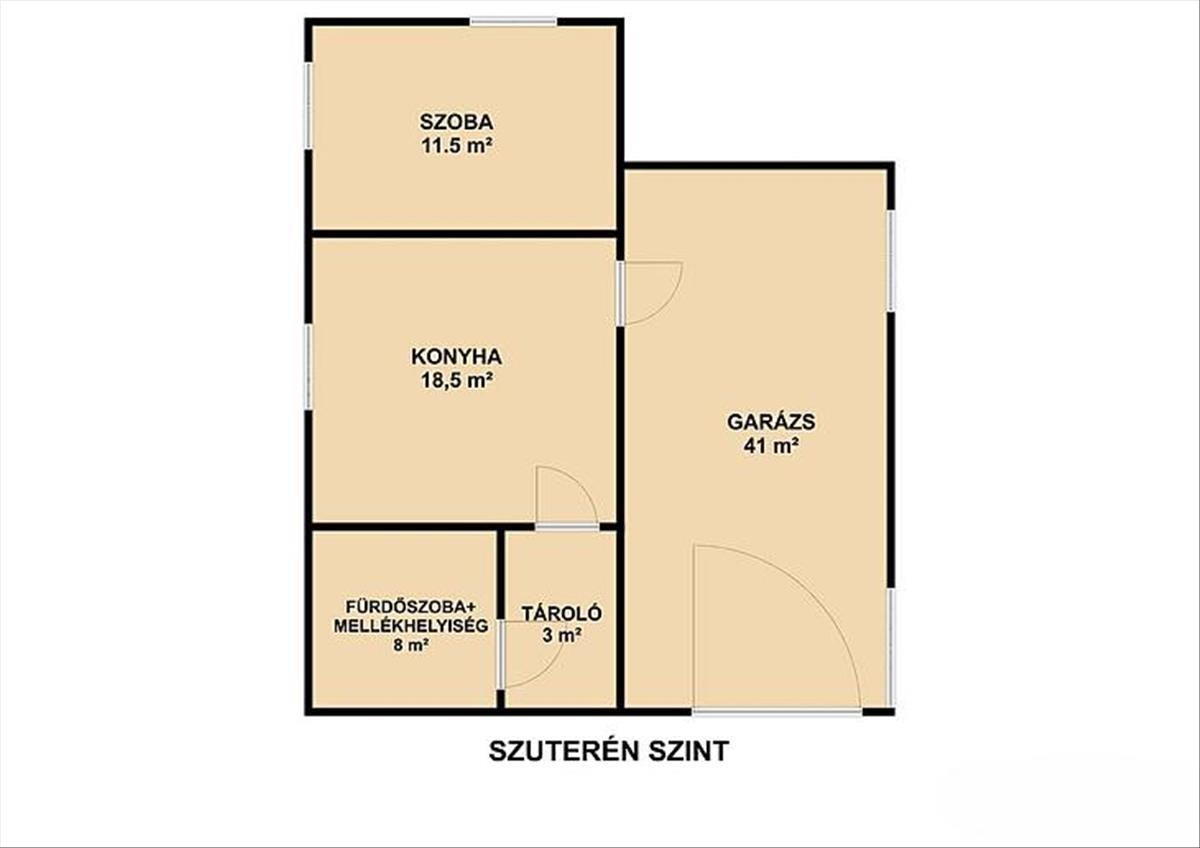 Szuterén: szoba, konyha + étkező, kádas fürdőszoba + mellékhelyiség, szerelőaknás garázs.
