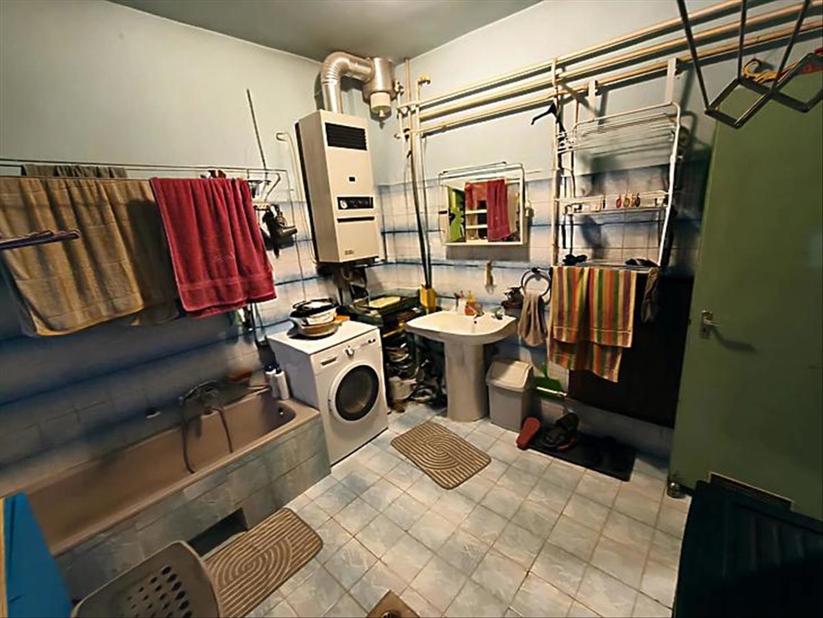 A szobákban, a nappaliban, az étkezőben és a kamrában linóleum, valamint padlószőnyeg a konyhában és a fürdőszobában pedig kő burkolatok vannak.
