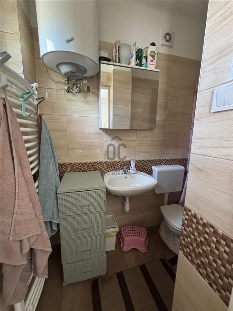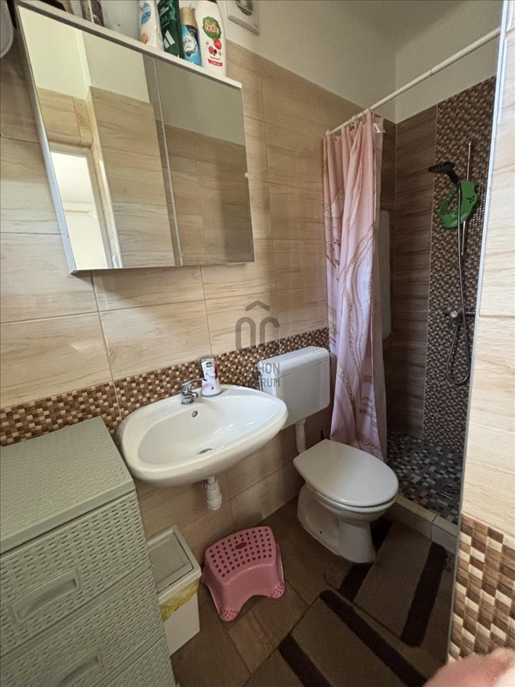 A fürdőszoba modern, praktikus kialakítású, amely minden szükséges kényelmet biztosít.