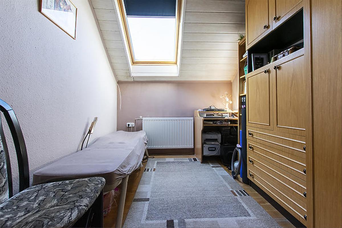 Csepel-Királyerdő egyik legcsendesebb részén, a Juharos utcában eladó egy kertvárosi hangulatú, négyszobás emeleti házrész. Az ingatlan belső kialakítása nettó 75 négyzetméter, amely a tetőtéri adottságoknak köszönhetően bruttó 90 négyzetméteres életteret biztosít. a lakáshoz egy 270 négyzetméteres, saját használatú telekrész tartozik, az udvarra való bejutást pedig elektromos kapu és kiépített autóbeálló segíti.