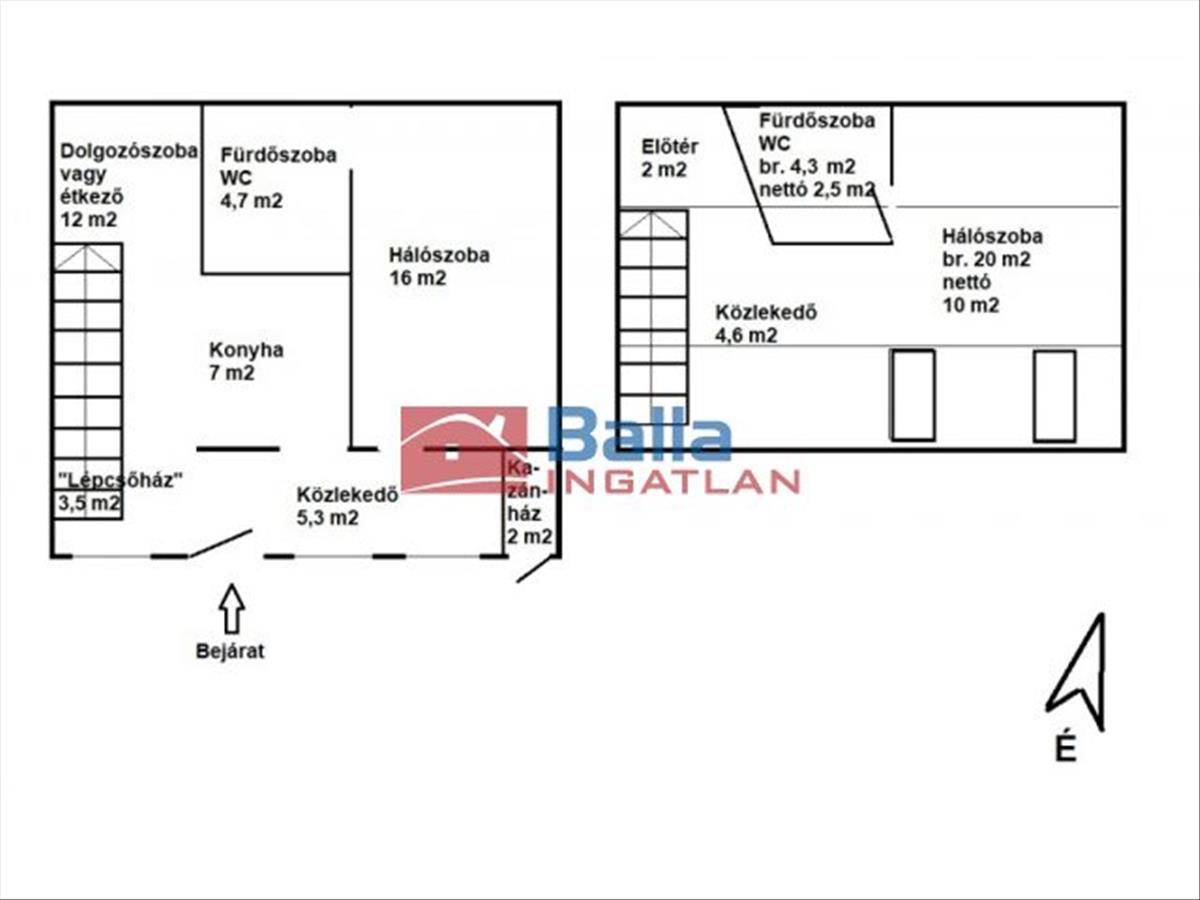 A lakás összesen 79, 4 m²-es valós alapterülettel rendelkezik, amely nettó 53 m²-t jelent, de a terek kihasználtsága és a tetőtér beépítése miatt jóval tágasabbnak érződik. a földszint 48, 5 m², a tetőtér bruttó 30, 9 m², nettó 14, 5 m², így a lakás ideális lehet pároknak, kis családoknak vagy akár két generáció számára is.