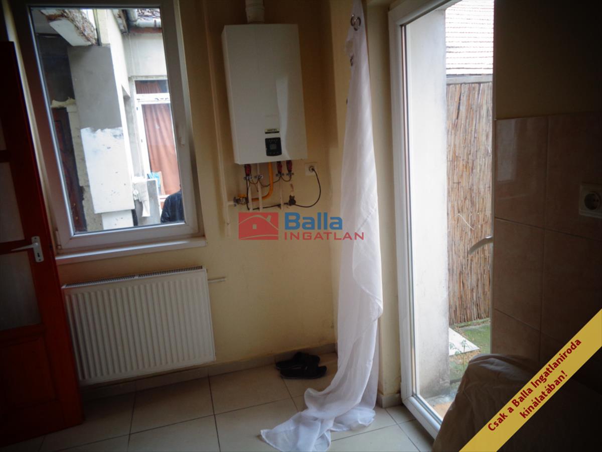 A szoba laminált parkettás, a kiszolgáló helyiségek járólaposak. Az ablakok műanyagra cseréltek, az ajtók fa szerkezetűek. a fűtés és meleg víz ellátást gázcirkó biztosítja.
