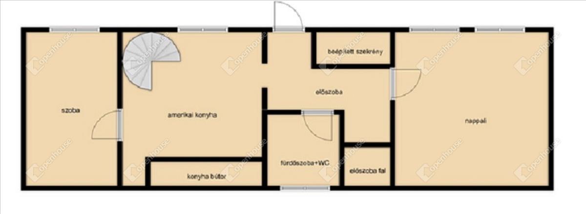 - a ház földszintjén nappali, szoba, konyha- étkező egy légtérben, előszoba, fürdőszoba wc egy helységben található.