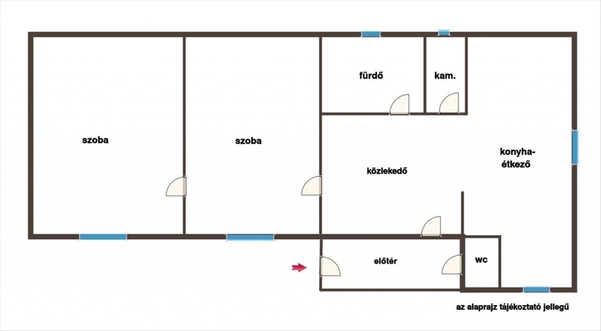 - két szoba, egymásból nyíló elrendezés,