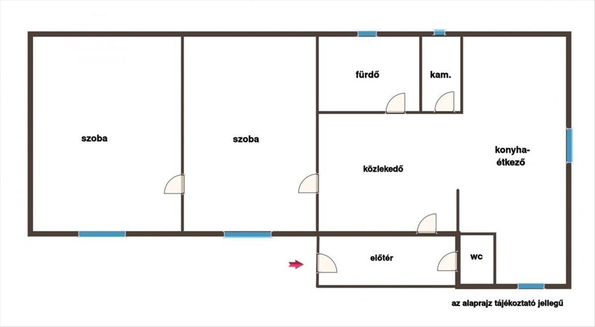 - két szoba, egymásból nyíló elrendezés,