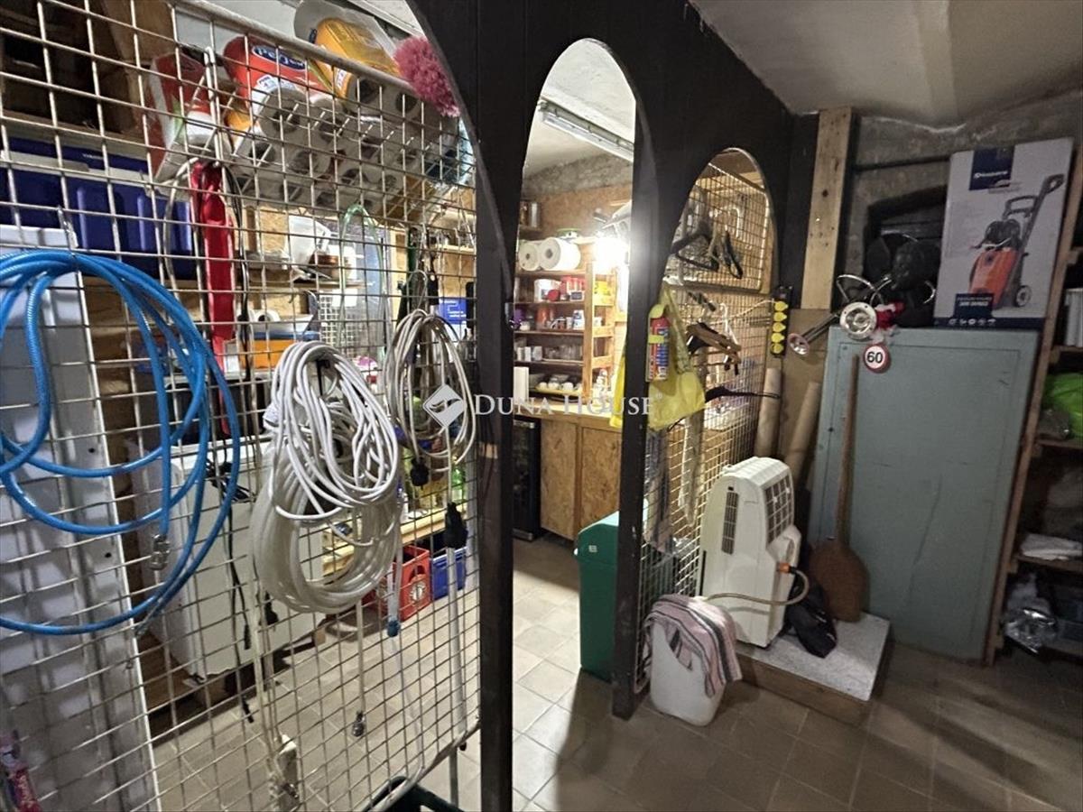 A szuterén szinten teljesen berendezett konyha, fürdőszoba és több helyiség található, amely szintén üzleti célra kialakított.