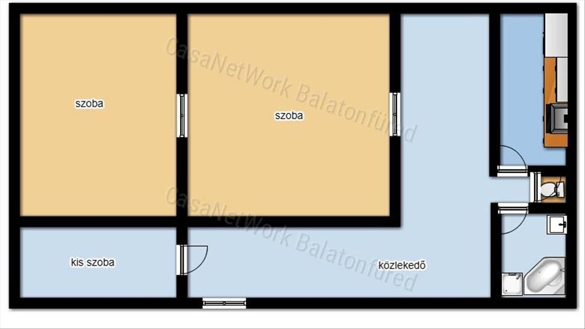 - 90 nm 2 és fél szobás; fürdő; konyha; felújításra váró