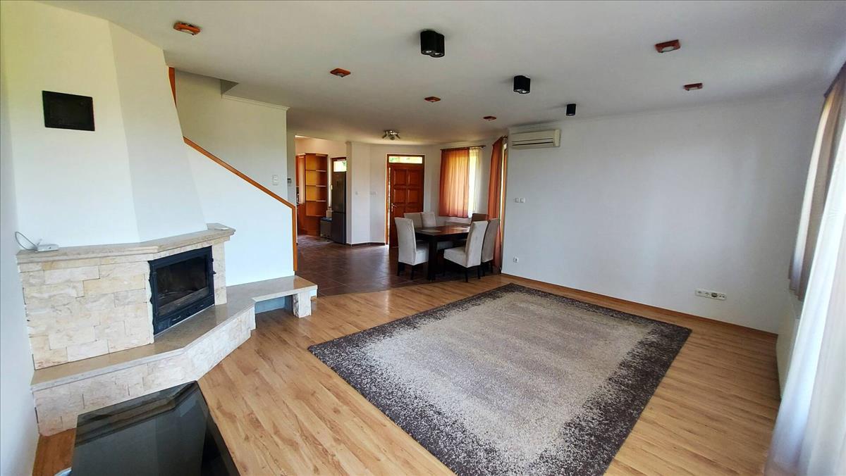 Nagykovácsiban, természetvédelmi terület mellett, az Amerikai Iskolától 5 perces autóútra egy szigetelt, 3 szintes, 197 nm-es, 3+3 félszobás, klímás, teraszos, saját kerttel rendelkező, garázsos ikerház fél eladó.Nagykovácsi kedvelt részén, csodálatos, nyugodt környezetben, jól megközelíthető csendes utcában találjuk ezt a meghitt nyugalmat árasztó, panorámás ingatlant, a fővárostól néhány km-re, mégis távol a városi nyüzsgéstől és a nagyváros zajától.