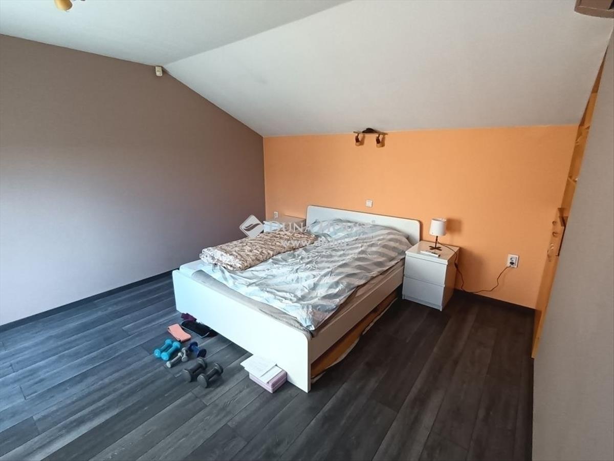 Az ingatlan modern kialakítású, tágas terek, nagy szobák jellemzik. a földszinten hatalmas nappali-étkező-konyha található, valamint egy szoba, zuhanyzós bidével, WC-vel ellátott fürdőszoba, mosókonyha, gardrób szoba, valamint egy garázs került kialakításra. a nappaliból jutunk fel a tetőtérben kialakított lakrészbe, ahol 2 tágas hálószoba, kádas fürdőszoba WC-vel, valamint egy hatalmas 50 m2 nagyságú tetőterasz található.