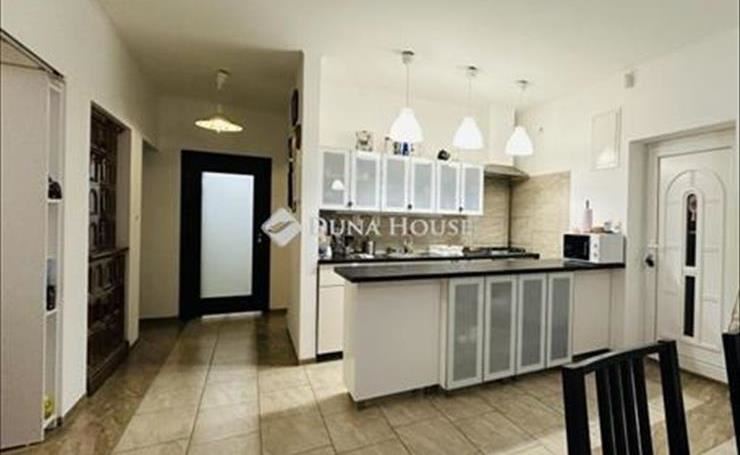 Földszinti lakás: 74 m² + 28 m² télikert, 2 szoba, amerikai konyha + étkező, fürdő wc-vel, háztartási helyiség, 400 m² telekrész. Fűtés: gázcirkó + cserépkályha.