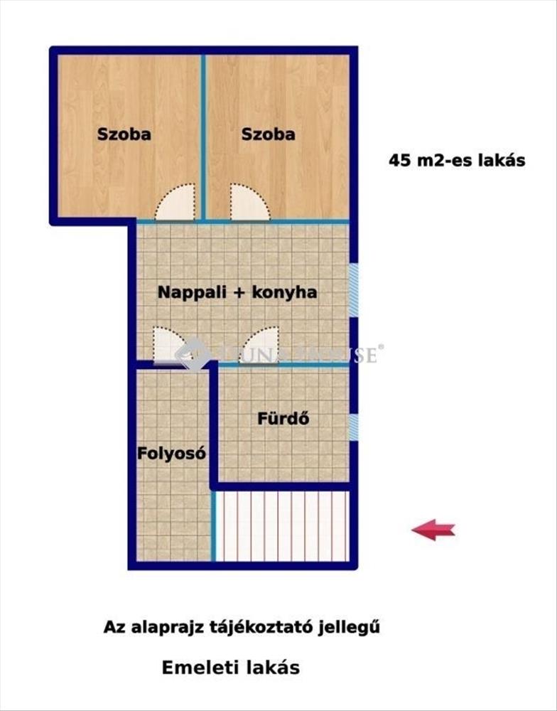 Nappali + amerikai konyha, 2 szoba, fürdő WC-vel