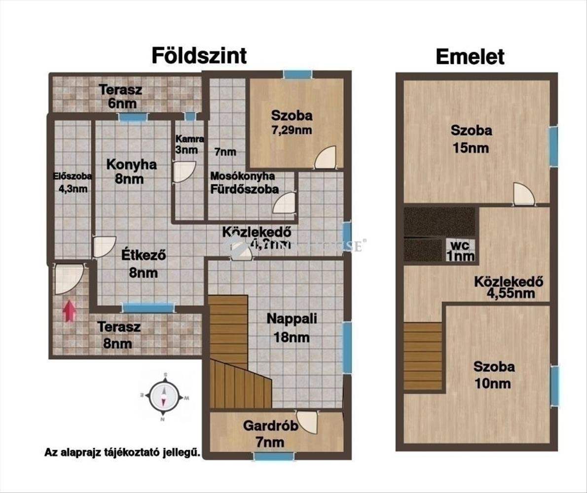 - 95 m² hasznos terület, kétszintes kialakítás