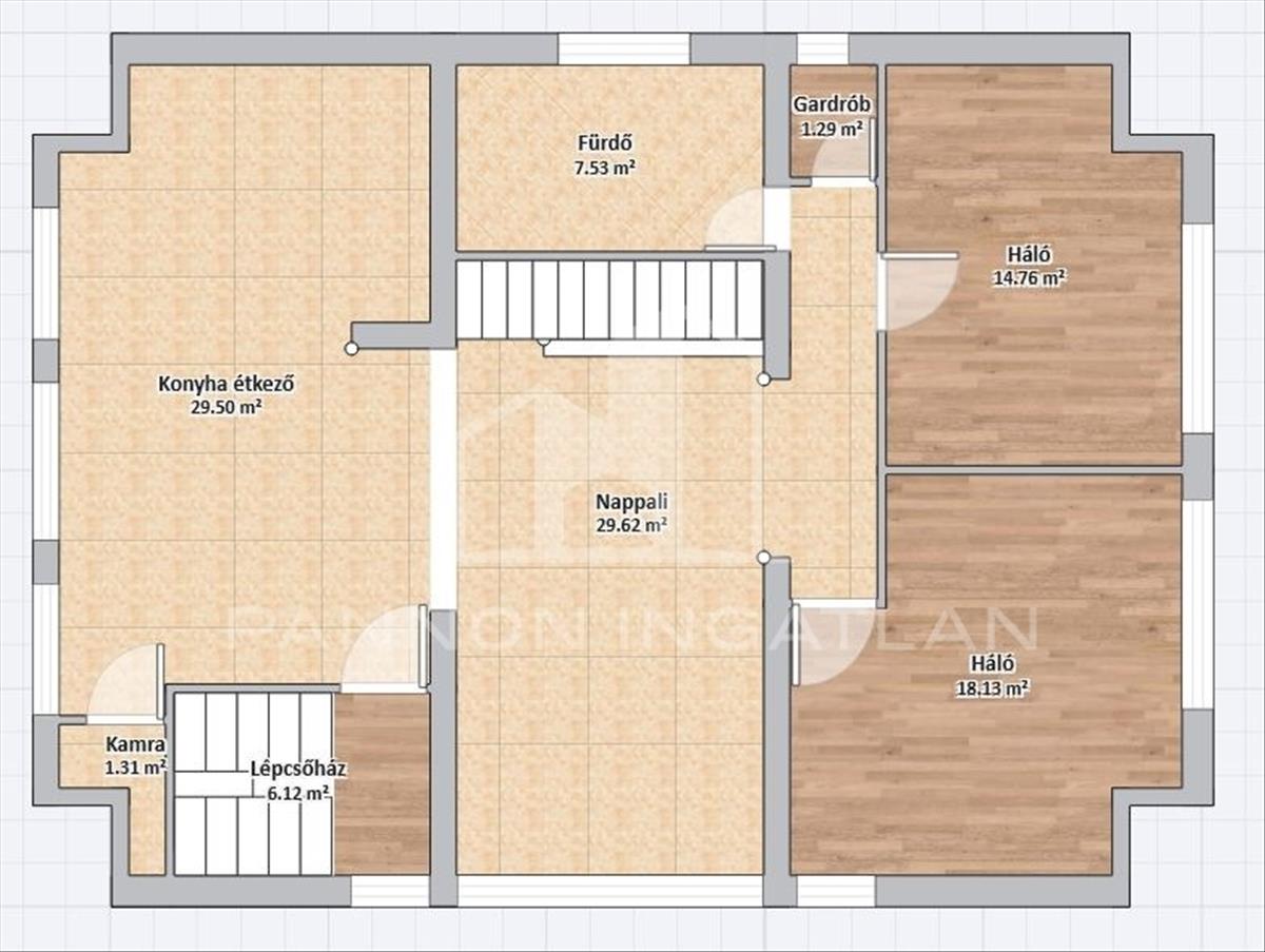 Az emeleti házrész külön helyrajzi számon szerepel és önálló ingatlanként hitelképes.